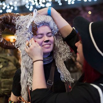 В четвертый раз в Москве 26 ноября 2016 года состоялась Moscow Decompression - мировой отголосок американского фестиваля Burning Man. Праздник по способам самовыражения стал очень похож с другим зарубежным торжеством, проводимым в конце октября. Разве что костюмы были менее устрашающим, но общая атмосфера практически ничем не отличалась. Как и все, с болезненной охотой перенятое из-за океана, художественная ценность этого мероприятия вызывает большие сомнения. Современное искусство, провоцирующее столько справедливых споров, в этом месте постаралось как будто доказать свою абсурдность. Так, например, одной из высокохудожественных инсталляций стала композиция с участие лежащей нагой девушки, потрогать и помассировать которую мог любой прохожий. Мыть для этого руки было вовсе не обязательно, а "приложится" к великому искусству можно было и вдвоём, и втроём без ограничений. Вот такой своеобразный способ нести культуру в массу предложили на Moscow Decompression. Для любителей высокой моды был проведен показ "Costume Camp Russia", в лучших традициях мировых подиумов - ярко, эпатажно, но не применимо и бессмысленно. Воспользоваться возможностью выразить свои радикальные убеждения в одежду, судя по всему, решили как раз все те, кто и в будние дни не сильно себя сдерживает. Любой человек, чувствующий в себе хотя бы малейшую принадлежность или внутренее стремление к авангарду, здесь мог позволить себе быть настоящим художником, музыкантом или любым другим творческим человеком. И даже огромная очередь на вход в не самую теплу погоду не остановила творческих личностей от неминуемого самовыражения. В нашем новом фото отчёте мы постарались собрать самые яркие элементы прошедшей 26 ноября 2016 года Moscow Decompression.